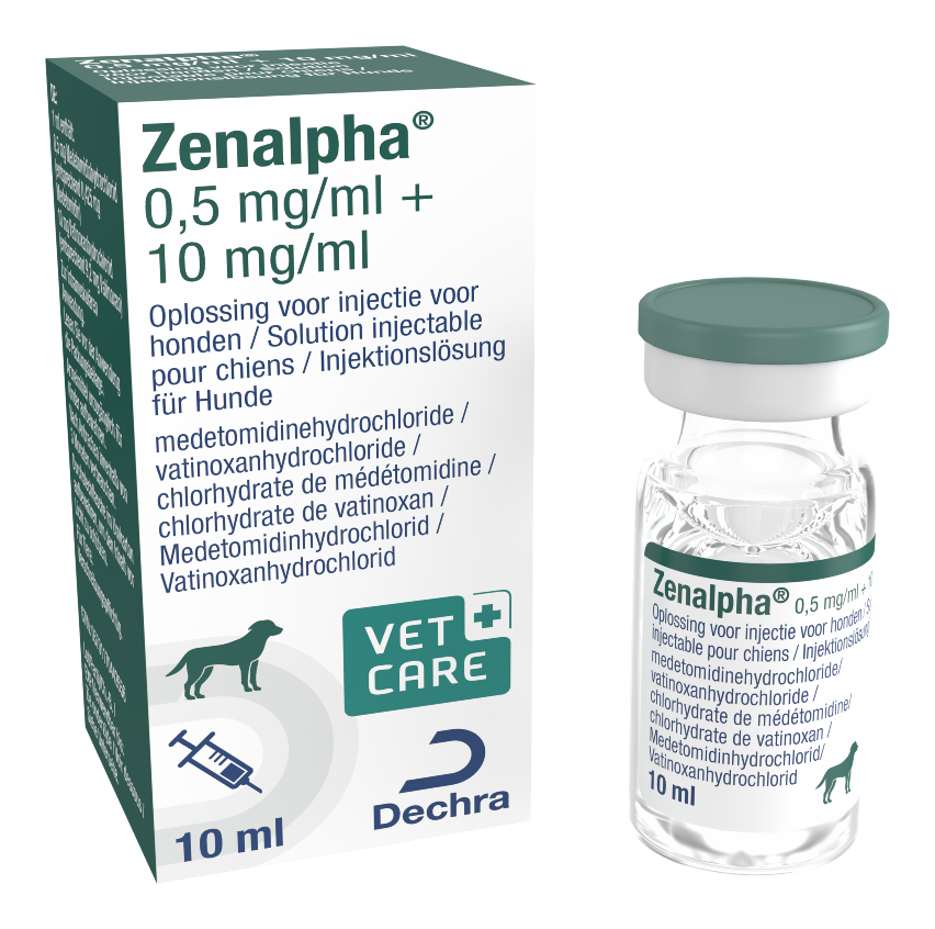 Zenalpha bevat 0.5 mg/ml medetomidinehydrochloride and 10 mg/ml vatinoxanhydrochloride